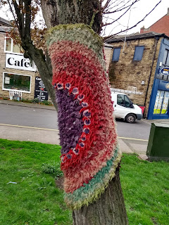 I forgot to mention, I went to Heckmondwike the other day and the trees were still wearing fabric. I posted about them in the summer, but I took some more photos last week. This one looks like upside down bloomers.
